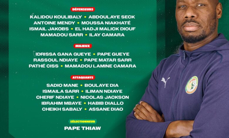 La liste publiée par le technicien sénégalais se distingue par l’arrivée de deux jeunes talents : Ibrahim Mbaye, attaquant de 17 ans évoluant au Paris Saint-Germain, et Mamadou Sarr, défenseur central de 20 ans du RC Strasbourg. Tous deux ont récemment officialisé leur choix de représenter le Sénégal.